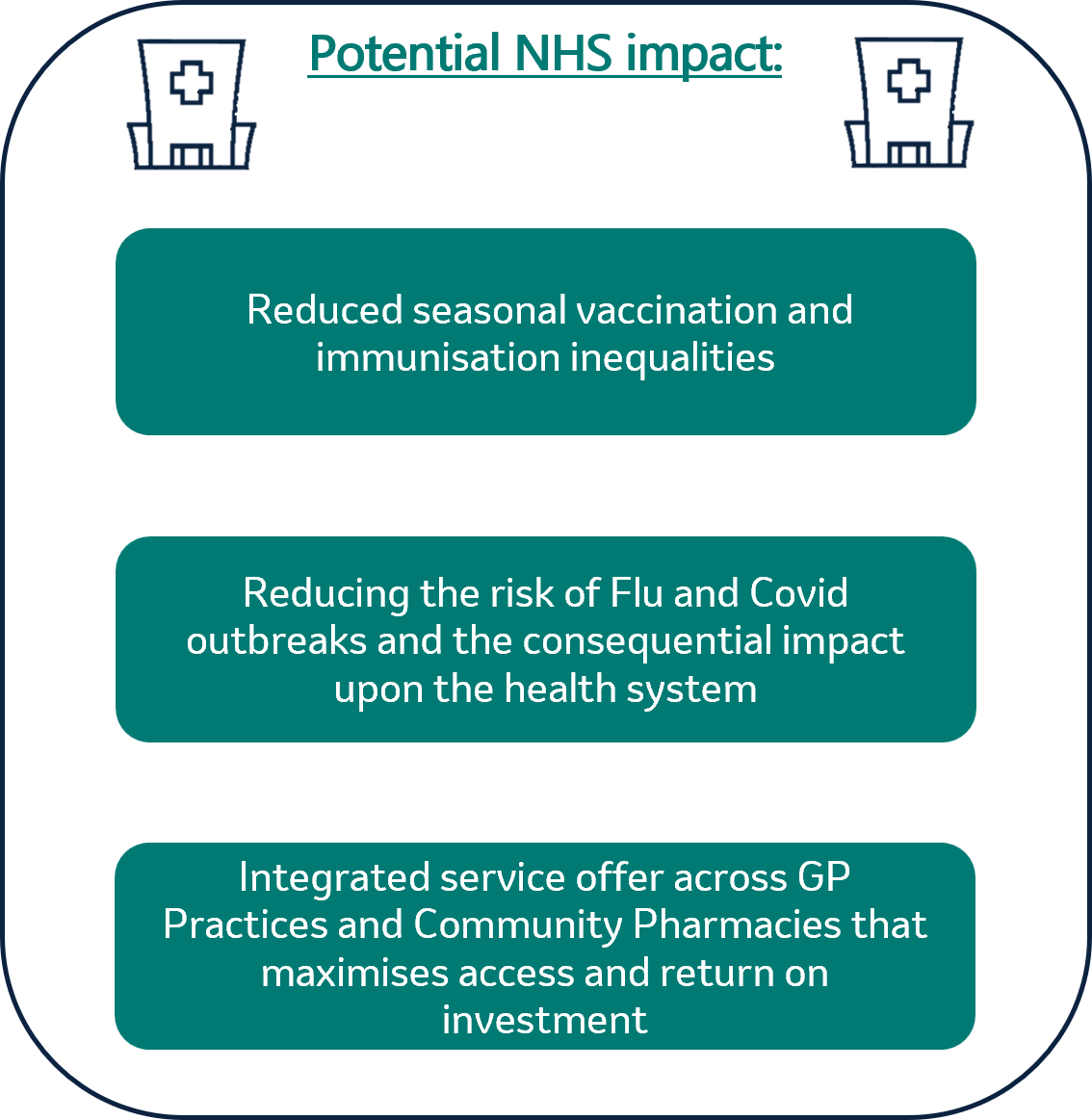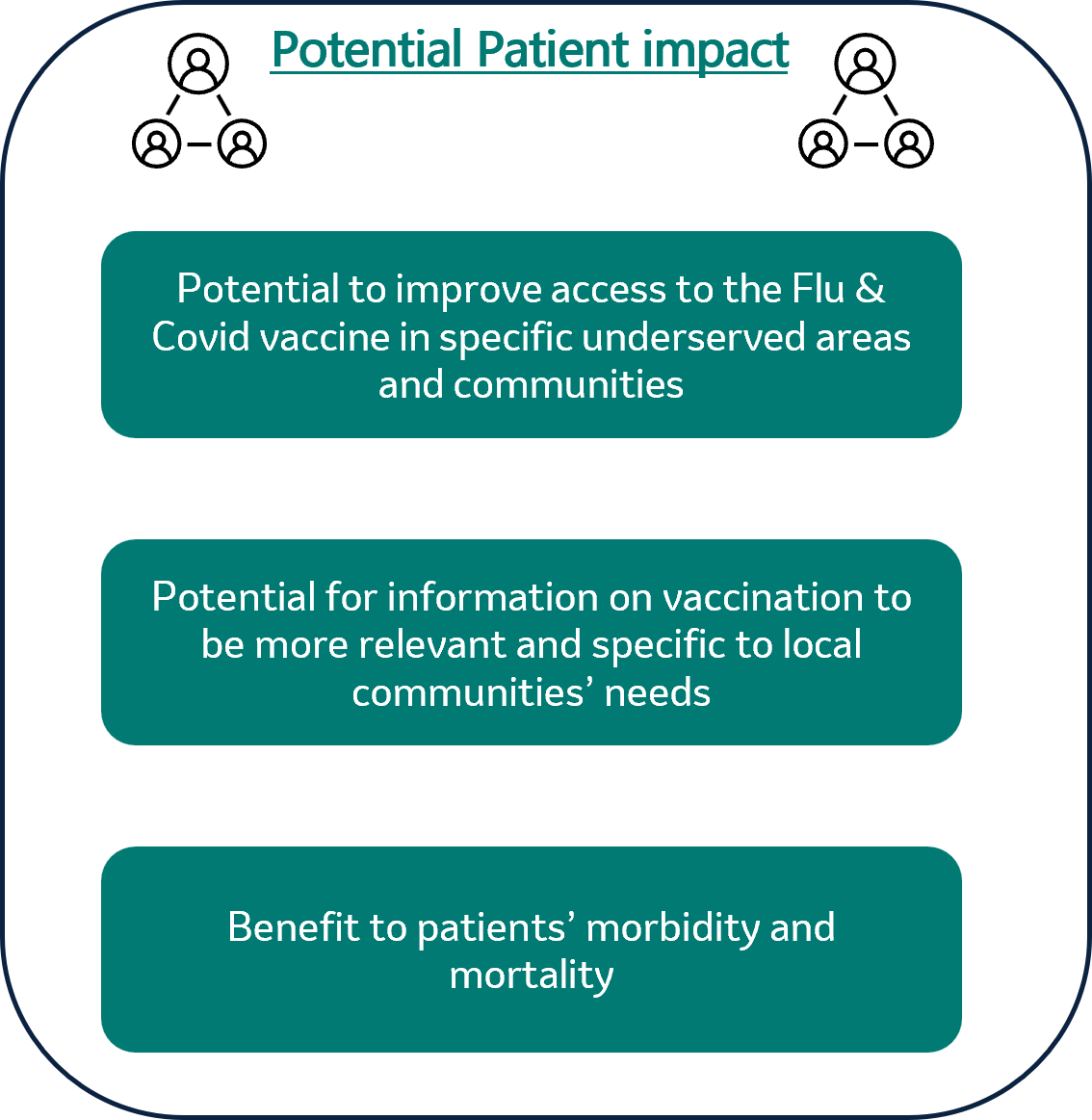 - Ensure equitable access to Flu & Covid vaccines